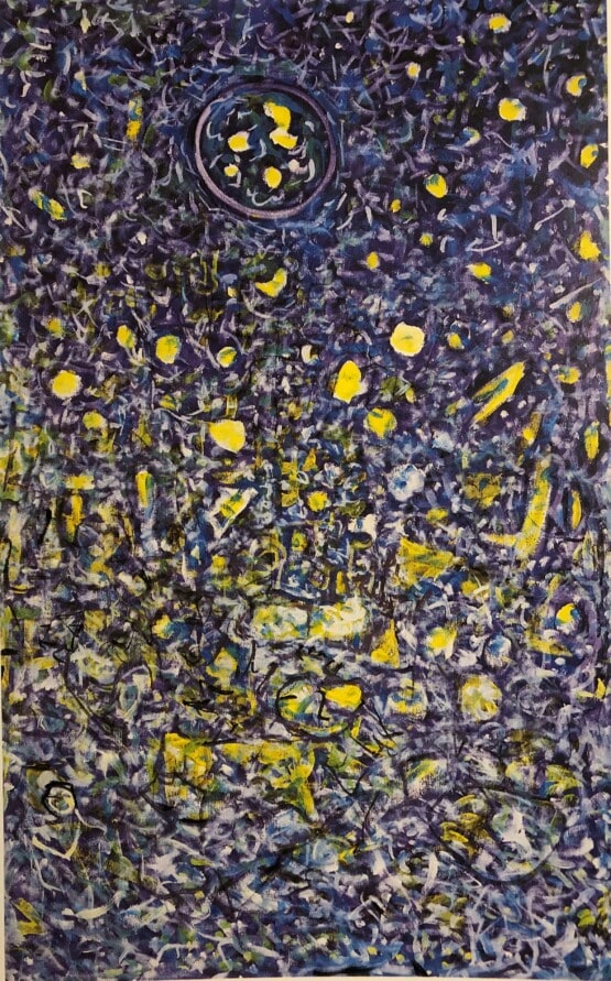 Marie Raymond, Le Monde étoilé (De sterrenwereld), 1969, olieverf op doek, 116 x 73 cm © Marie Raymond Archives, ADAGP, Paris
